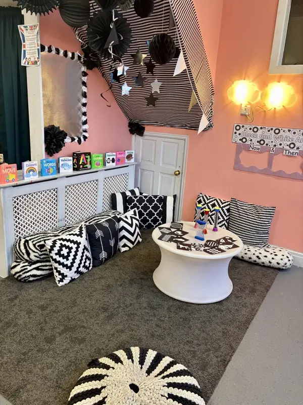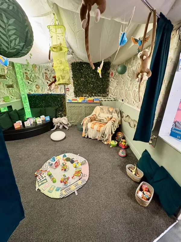 They offer a safe, stimulating environment tailored to both the triumphs and tumbles of early walking. We offer a safe space to explore with soft flooring, clear pathways and low level furniture. We encourage movement based play, outdoor exploring and cozy comfortable home from home feel.